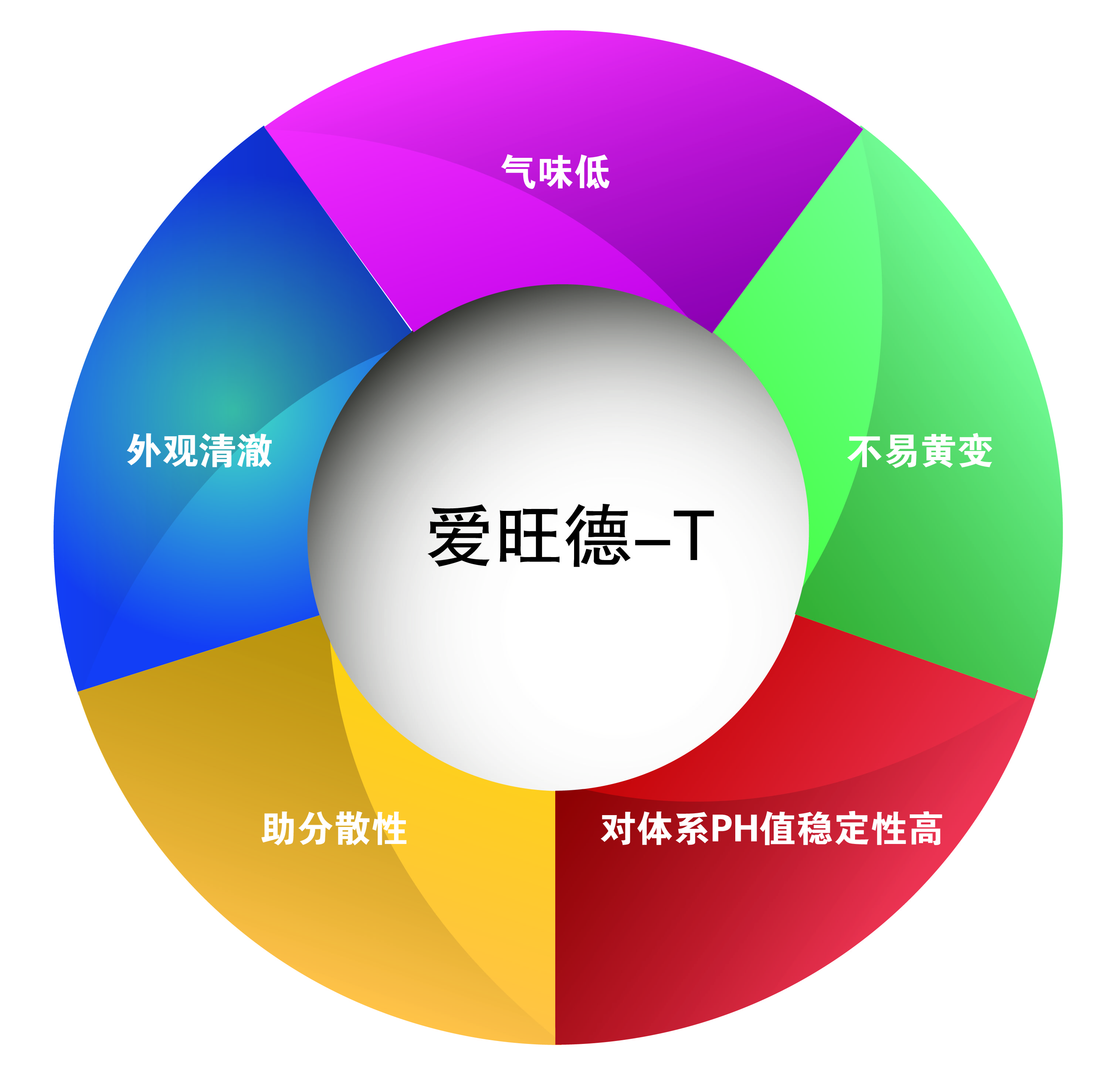 外觀清澈,助分散性,對(duì)體系PH值穩(wěn)定性高,氣味低,不易黃變